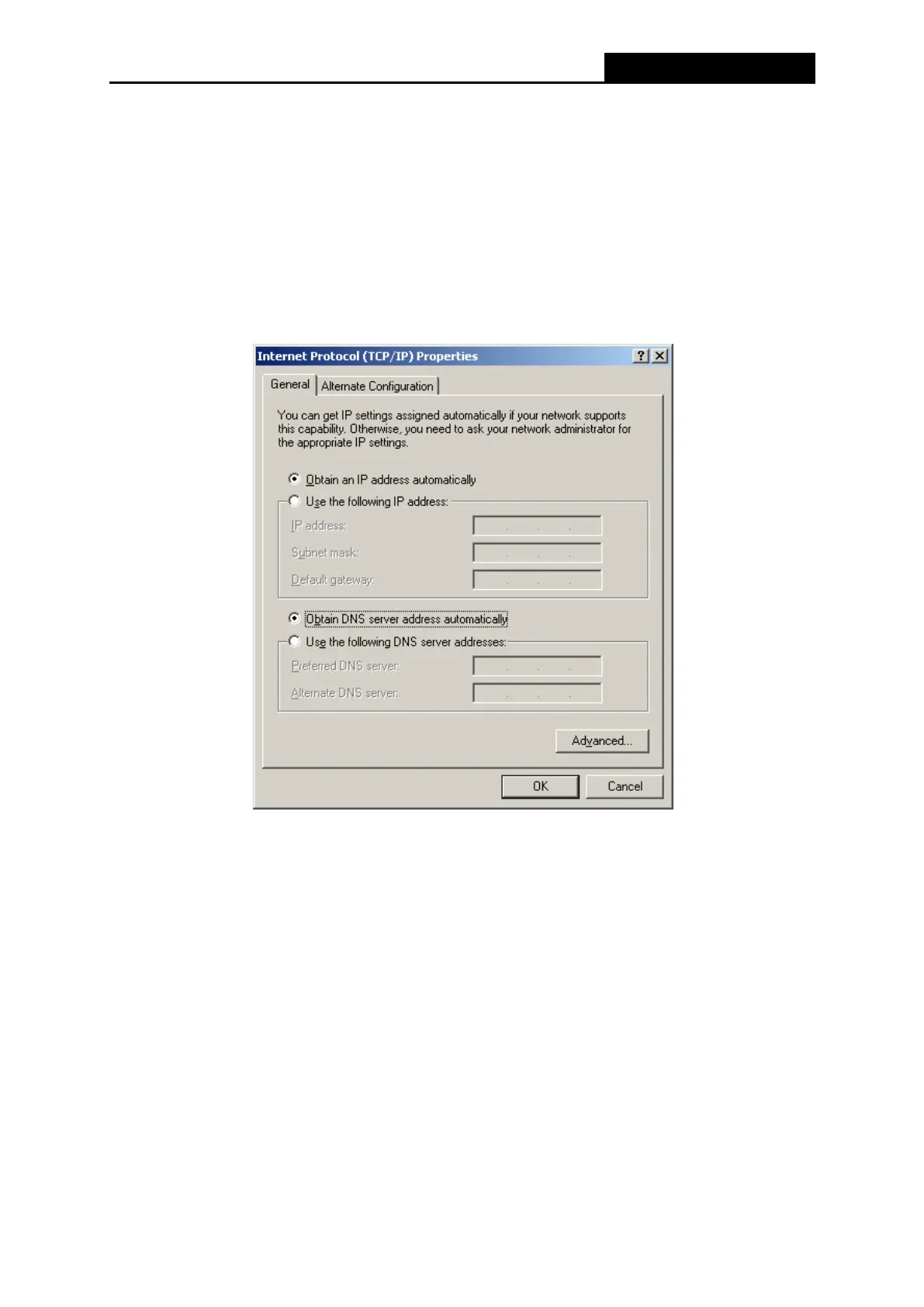 Select Obtain an IP address automatically, Choose Obtain DNS server automatically, as