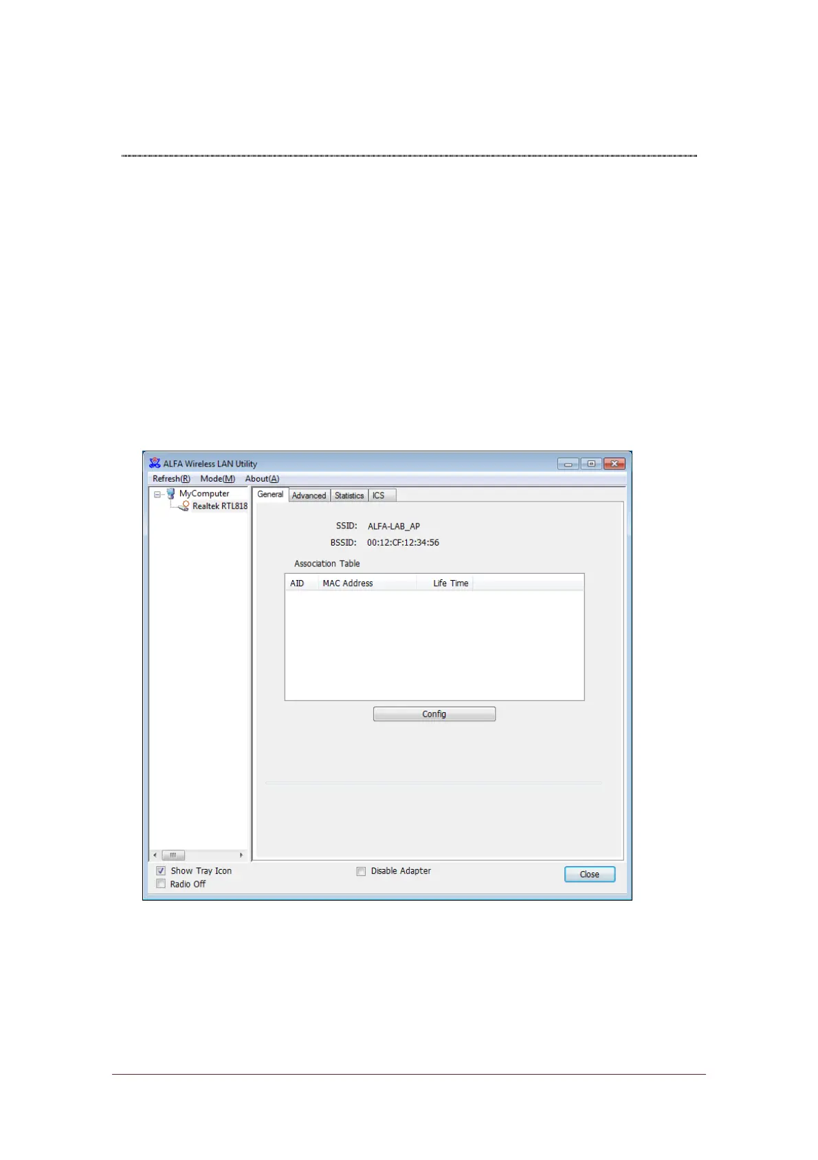 After configuring the adapter in AP mode, this “General” page shows up, which shows the