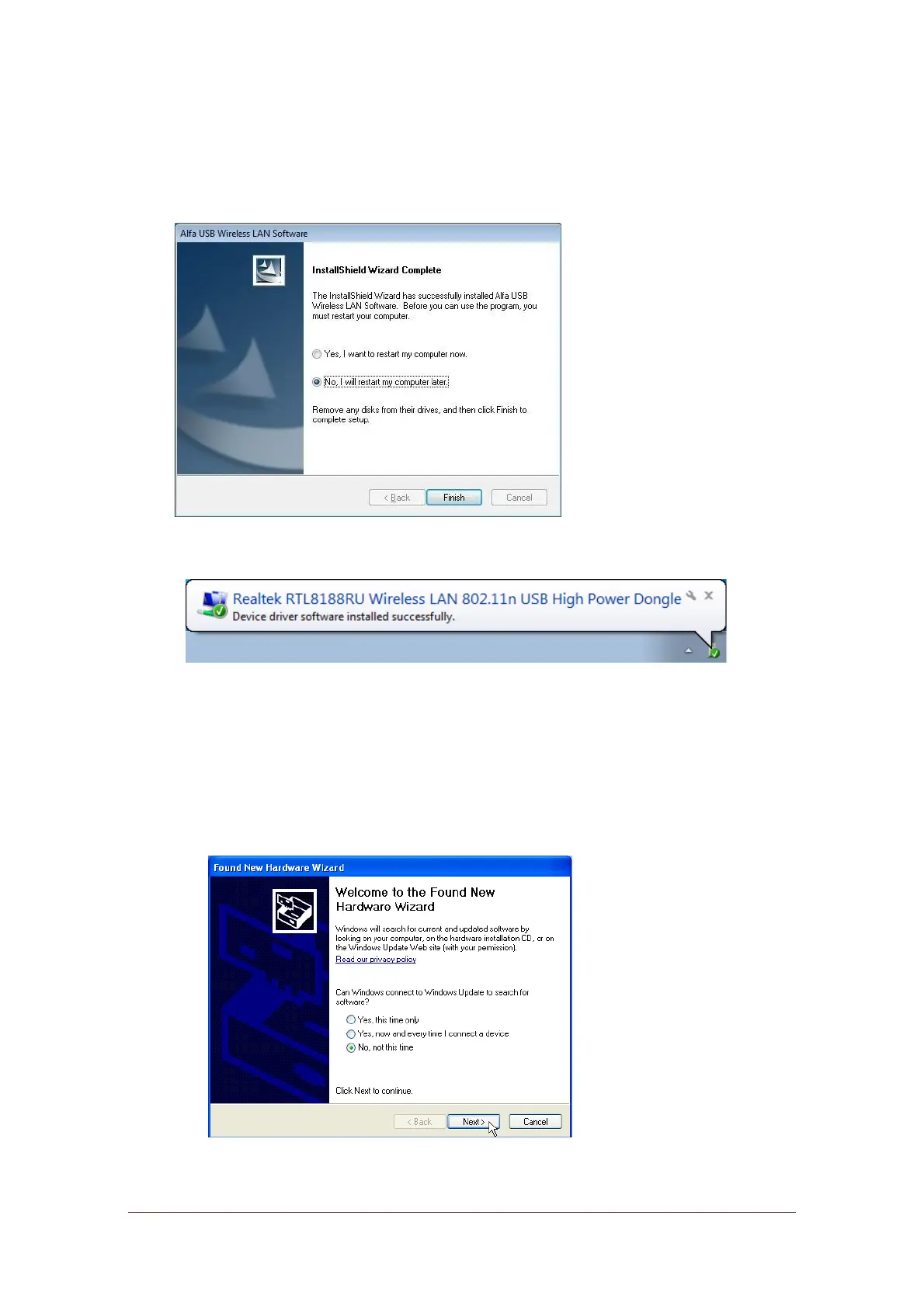 The “Found New Hardware Wizard“ will pop up. (Note: This wizard