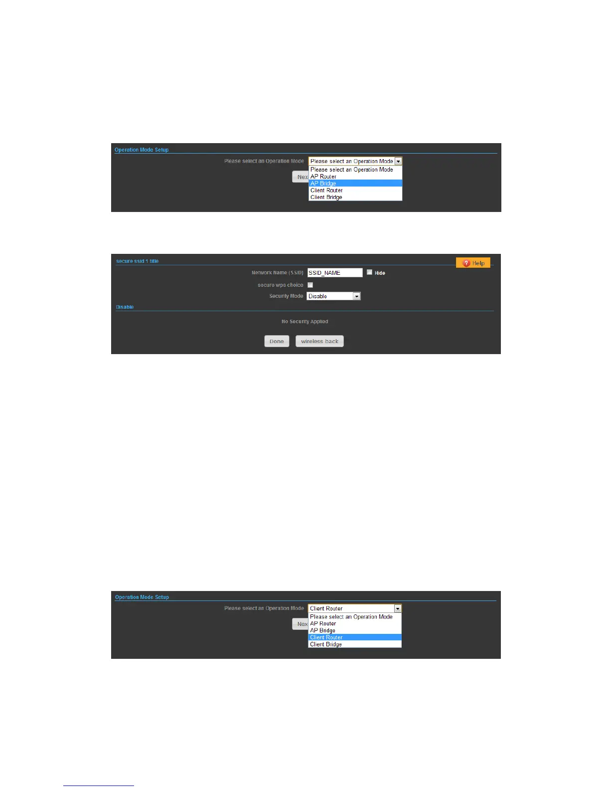WPA-PSK_WPA2-PSK, WPA, WPA2, WPA1_WPA2, 802.1X; Default: Disabled