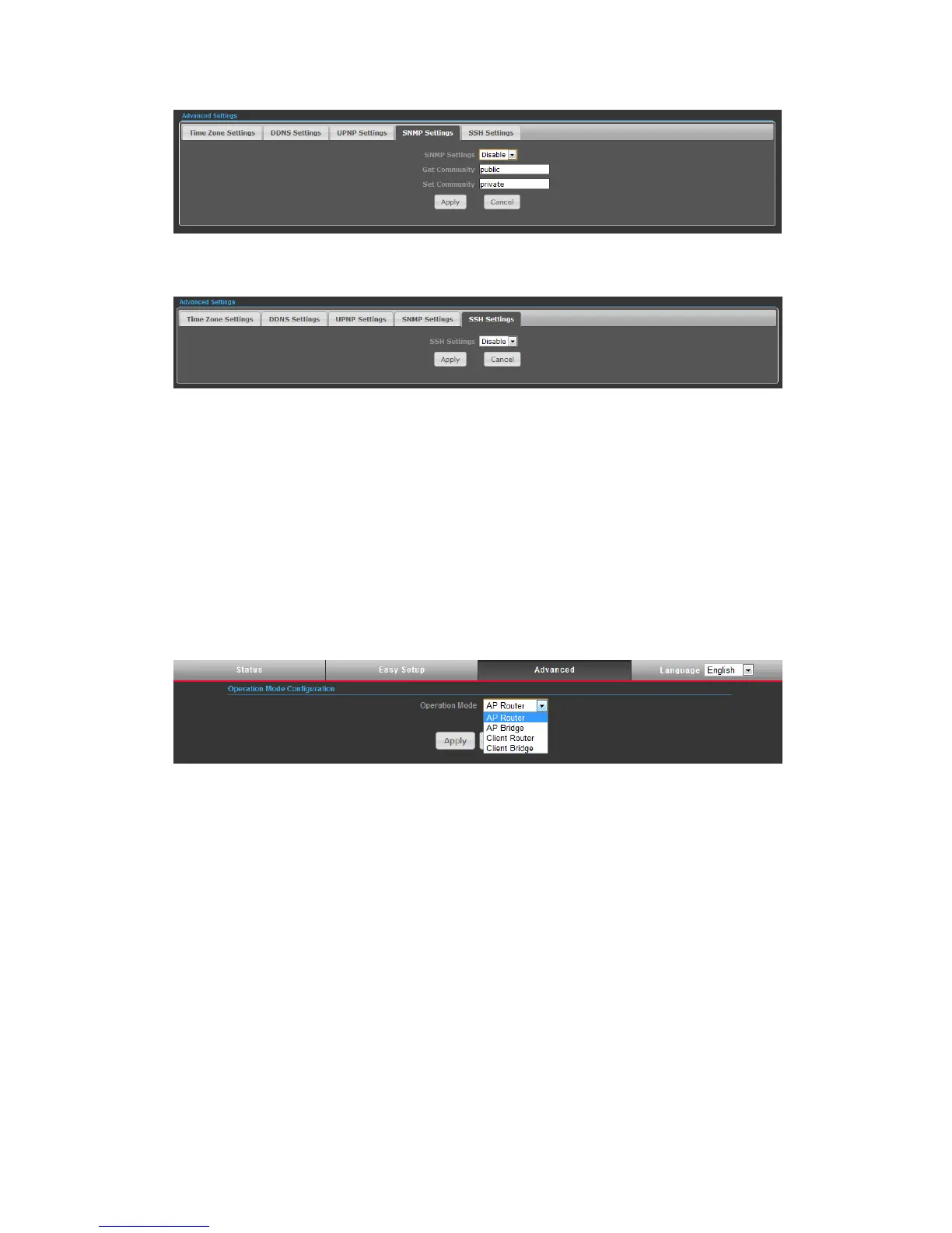 The Operation Mode content four modes: AP Bridge, AP Router, Client Router and