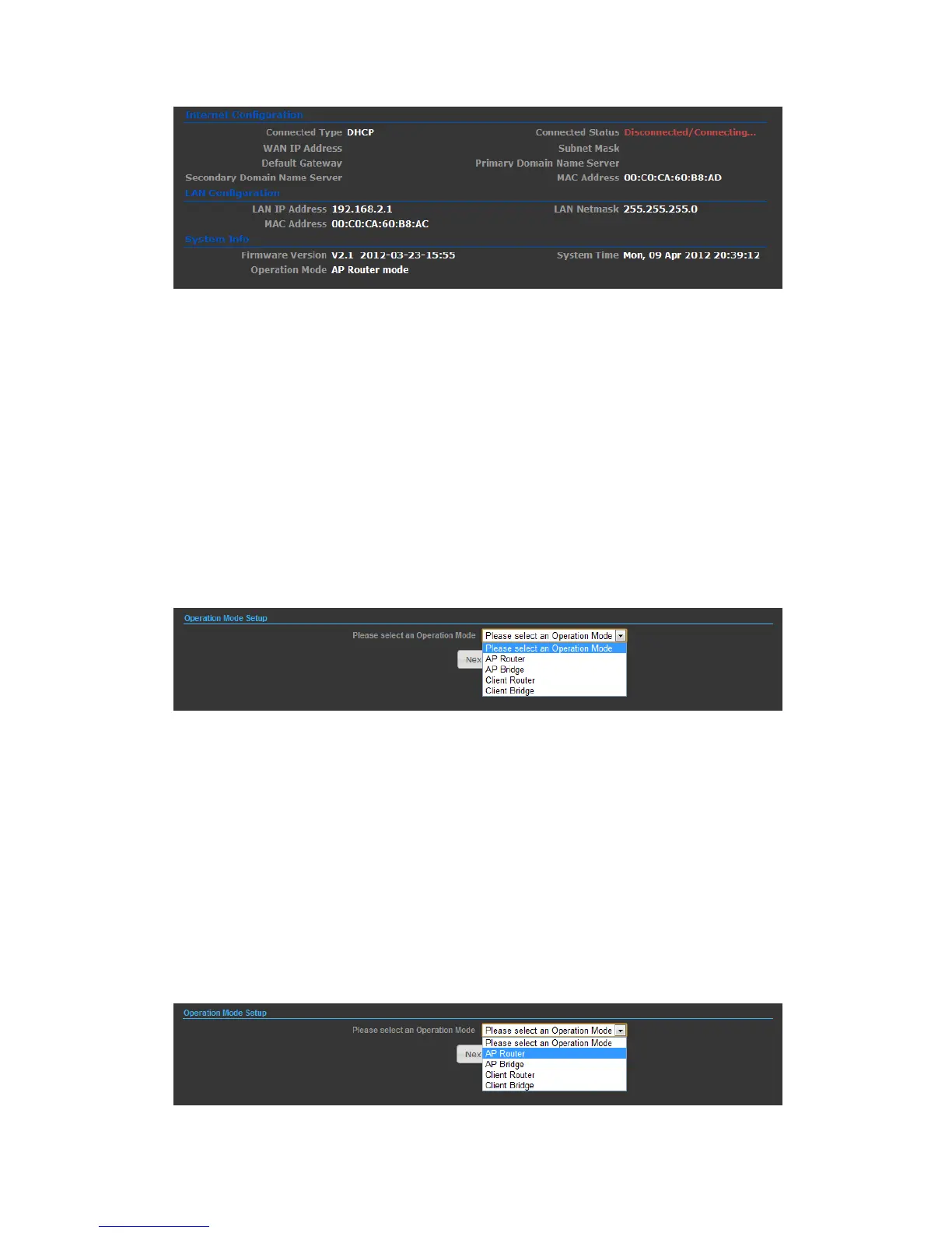 OPERATION MODE – AP ROUTER