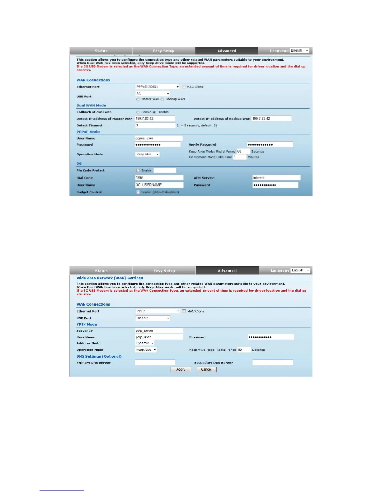 ◆ Ethernet Port — Select ―PPTP‖ for the WAN port connection from the drop-down list.