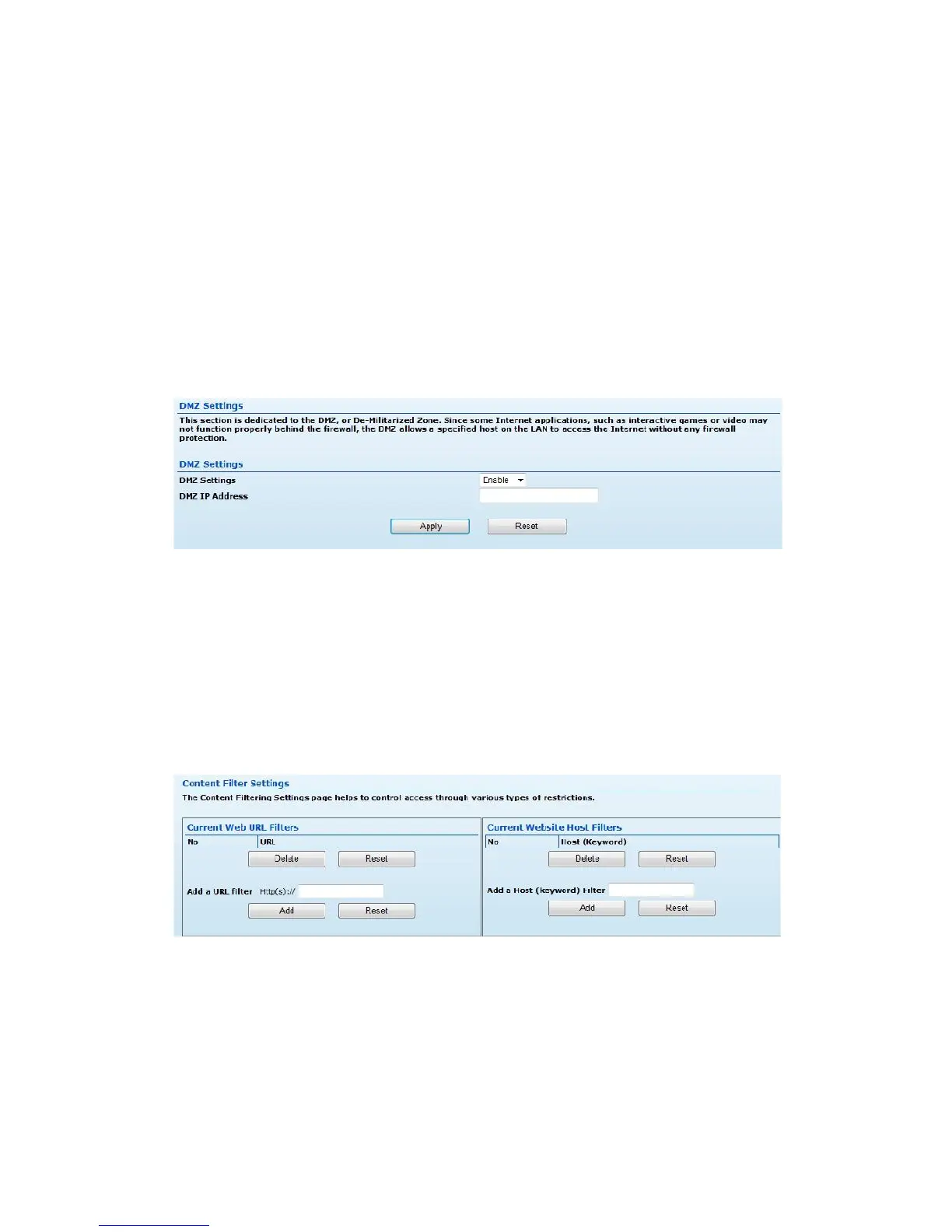 ◆ DMZ Settings — Sets the DMZ status. (Default: Disable)