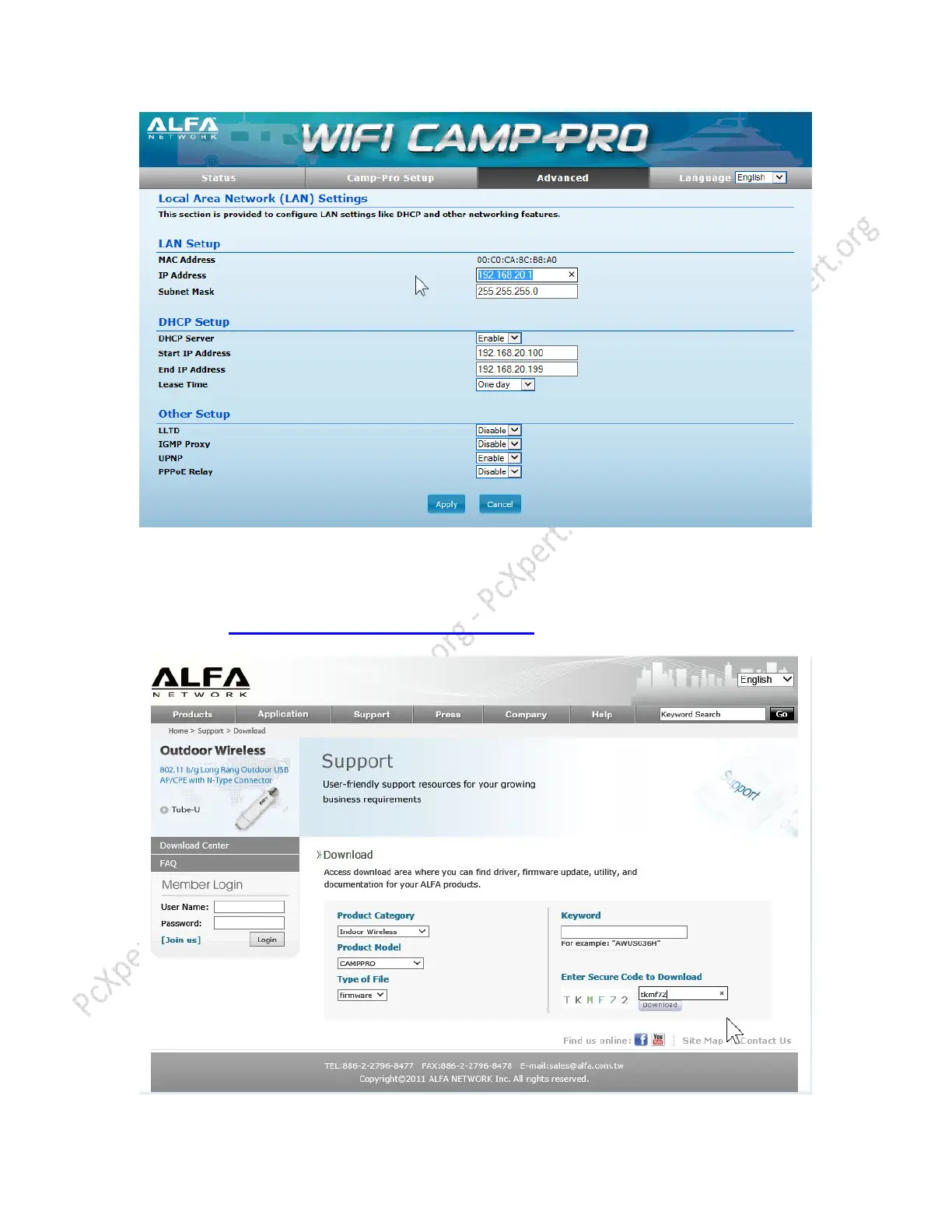 Alfa Network WiFi CampPro Kit - LAN Settings and Firmware Upgrade; Configuring Local Area Network (LAN) Settings; R36 Firmware Upgrade Procedure