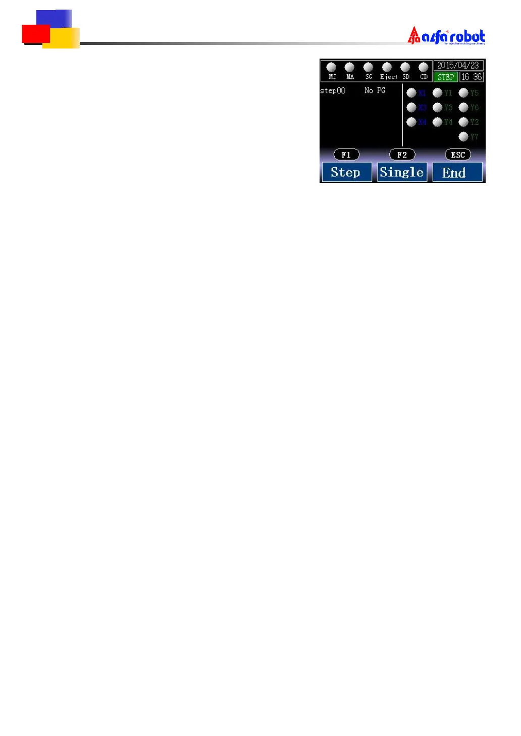 Press F2 to start single cycle action. Action continues from the step now to the step [mould