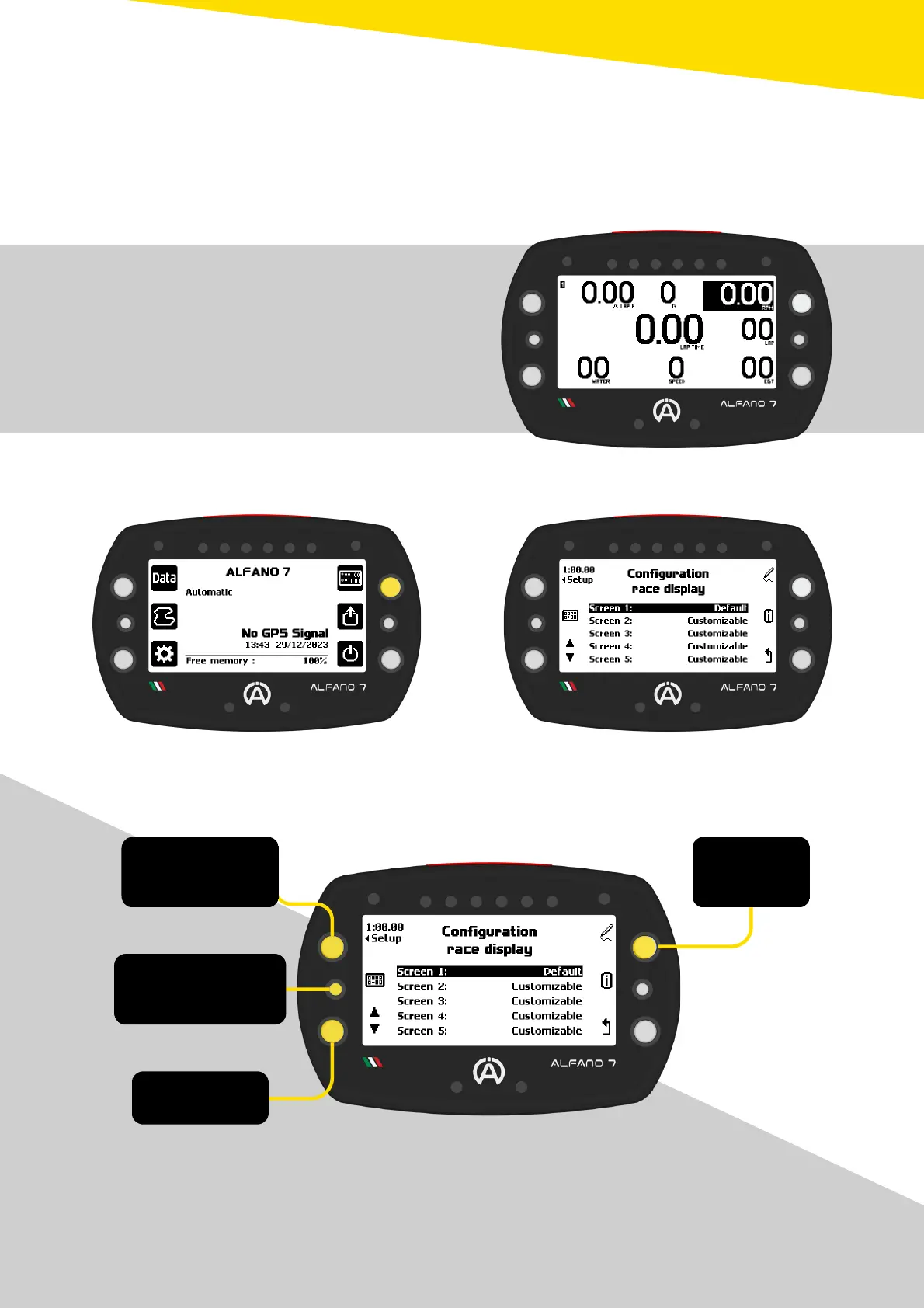 With the Alfano 7 it is possible to configure the Race Screen down to the smallest detail,
