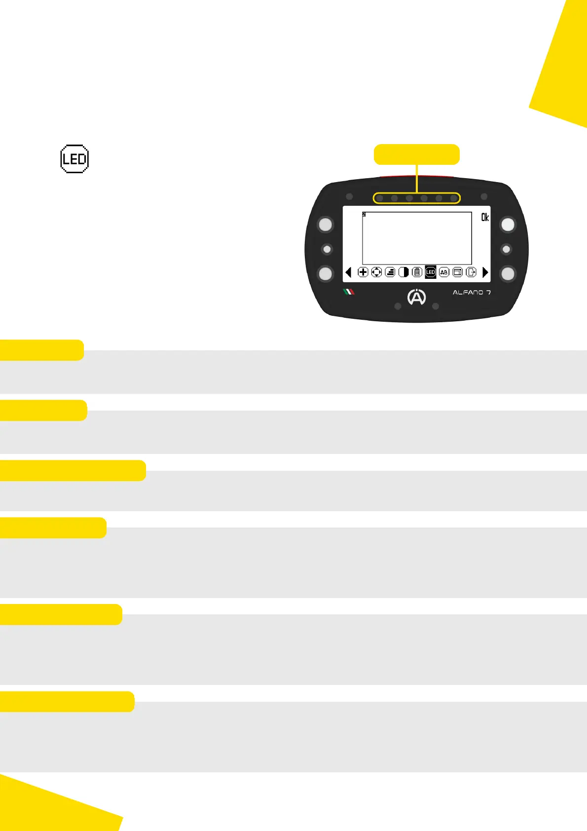The 6 LEDs system indicates the engine rpm, to set the ignition thresholds and the colors of