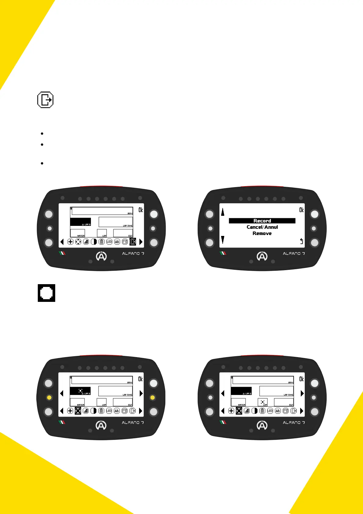 Remove: Remove all settings, in this case the race screen will be saved blank