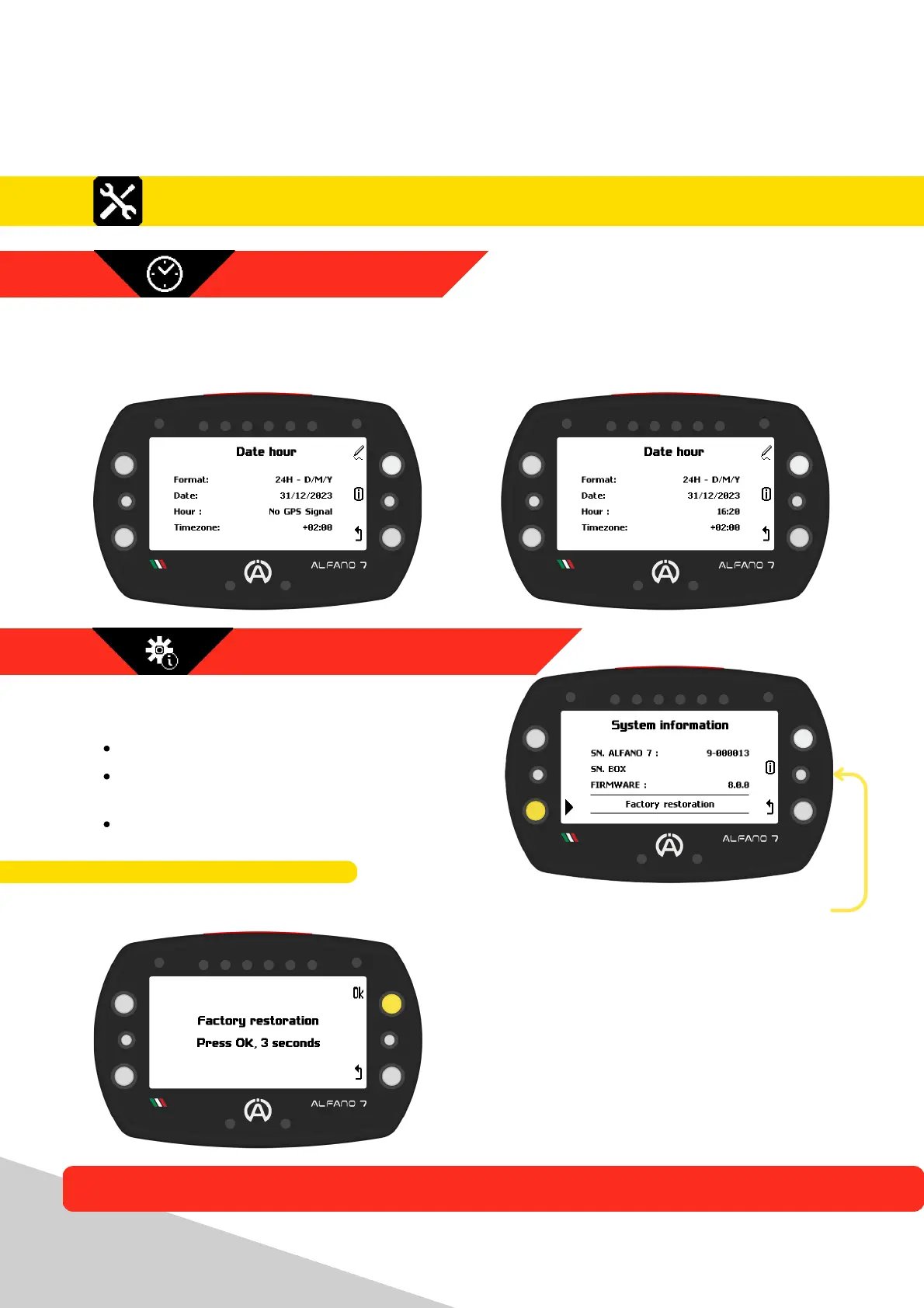 The Alfano 7 will be restored to its factory state, and all saved data, tracks, and settings will