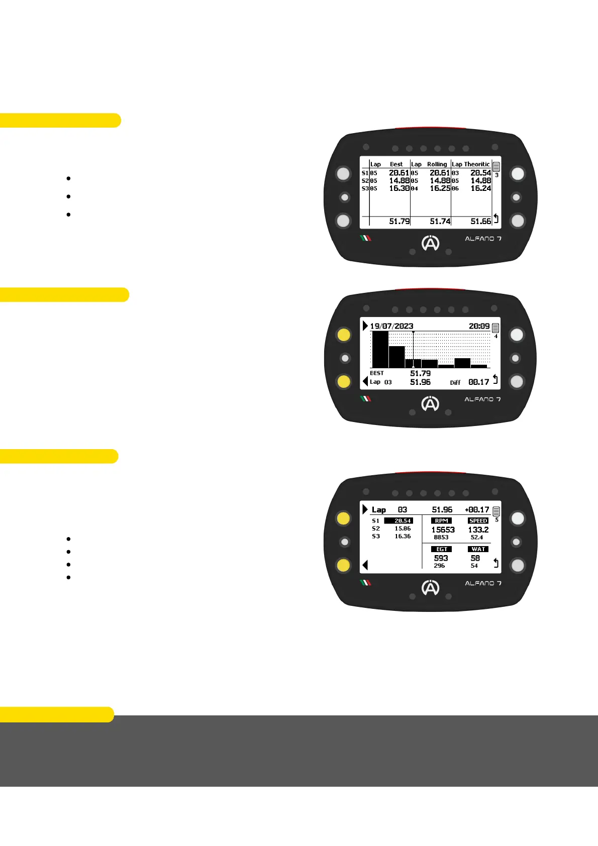 If present, the sectors that make up the lap are shown, the sectors with the best time of the