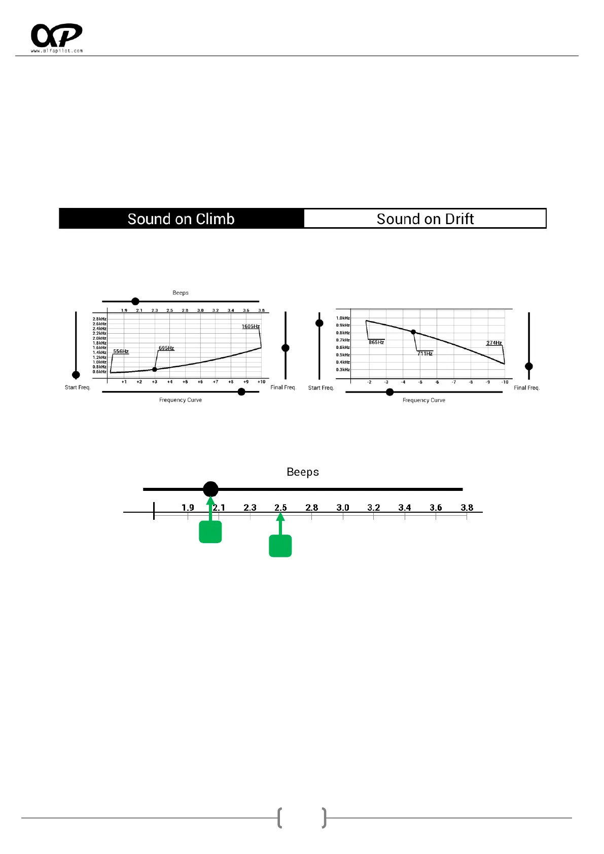 * note: the beeps configuration is only available in Climb, since in drift the tone is continuous and there are no beeps.