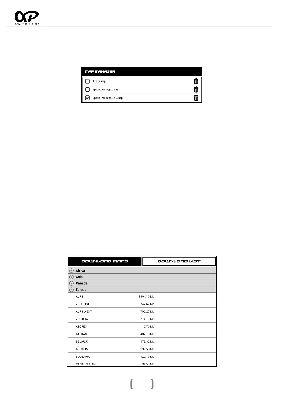 Download Maps: will show us a list of available maps organized by Region. We can display the