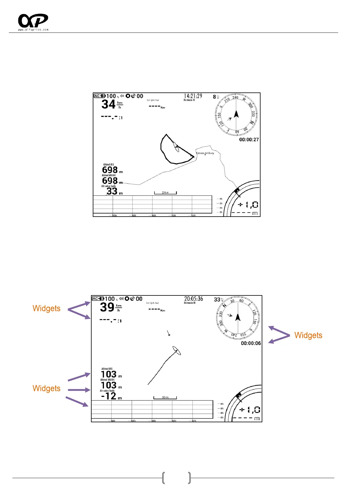 alternate between them using the side buttons. On the flight screen we will have Widgets, as well as access
