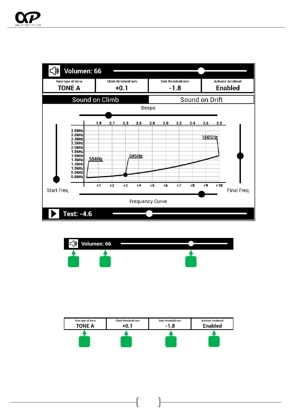 Through this configuration screen we can adapt the sound of the vario to our tastes, as well as perform