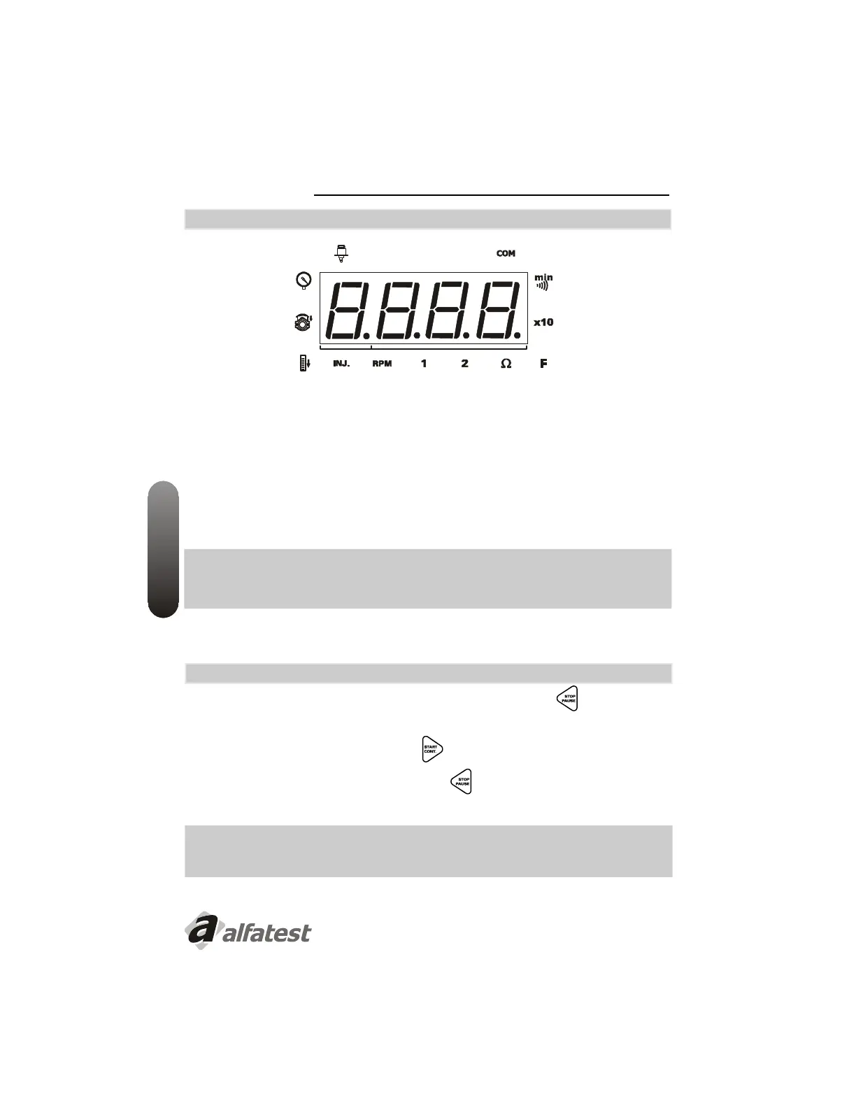Si necesitar hacer una pausa en el test, durante el proceso, presione la tecla Parar/Pausa . Será exhibida la letra