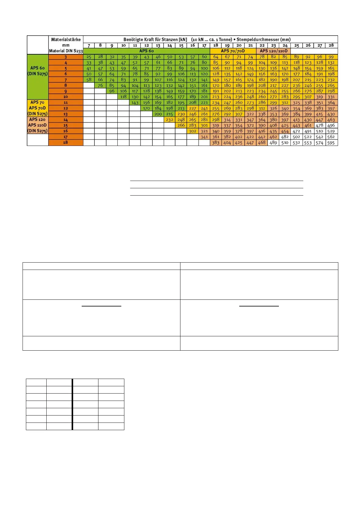 Arbeitsbereich der APS-Stanzbügel für Rundlöcher bei Stahl S233