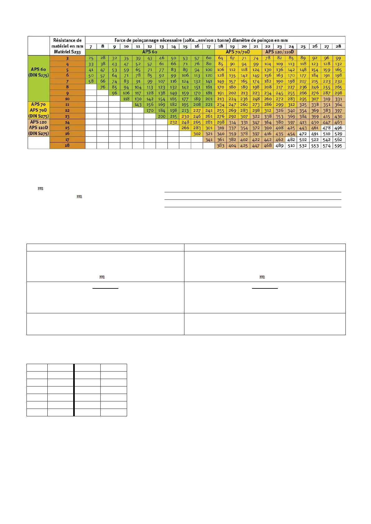 Domaine de travail des étriers de poinçonnage APS pour trous ronds chez acier S233