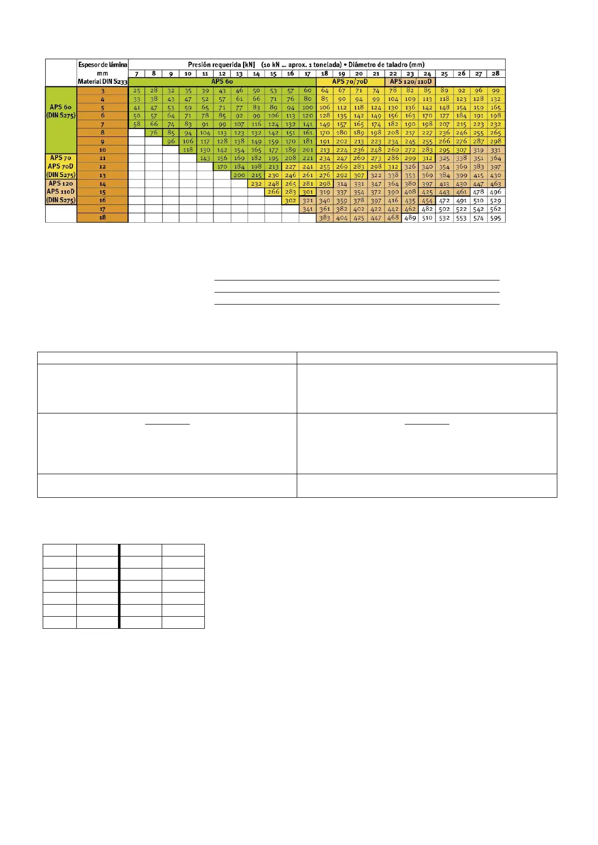 Arcos de punzonado APS 70, Fmax = 310 kN