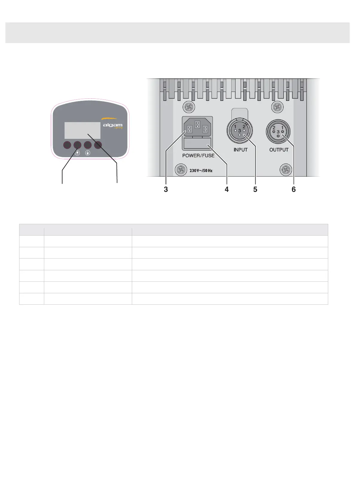 Connecteur XLR mâle 3 broches, entrée du signal DMX