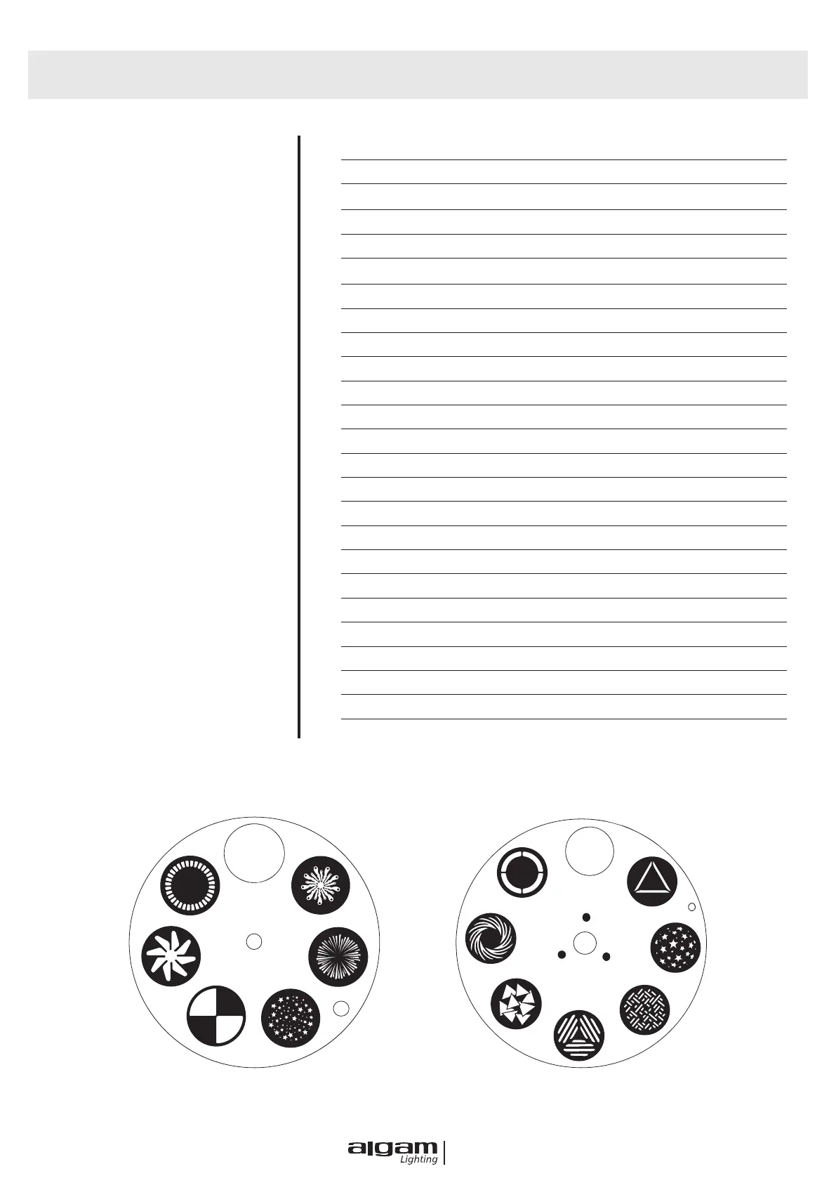 7 gobos + ouvert, rotation de la roue et effet SHAKE