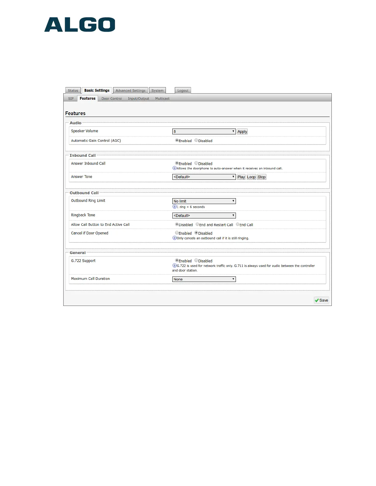 Basic Settings Tab – Features
