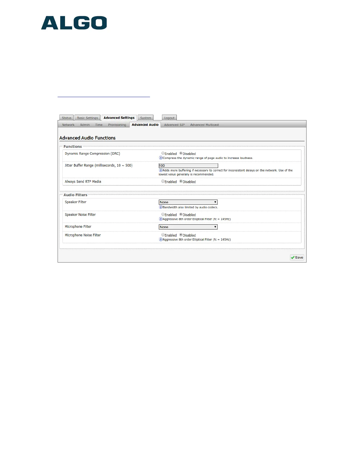 For more Algo SIP endpoint provisioning information, see: