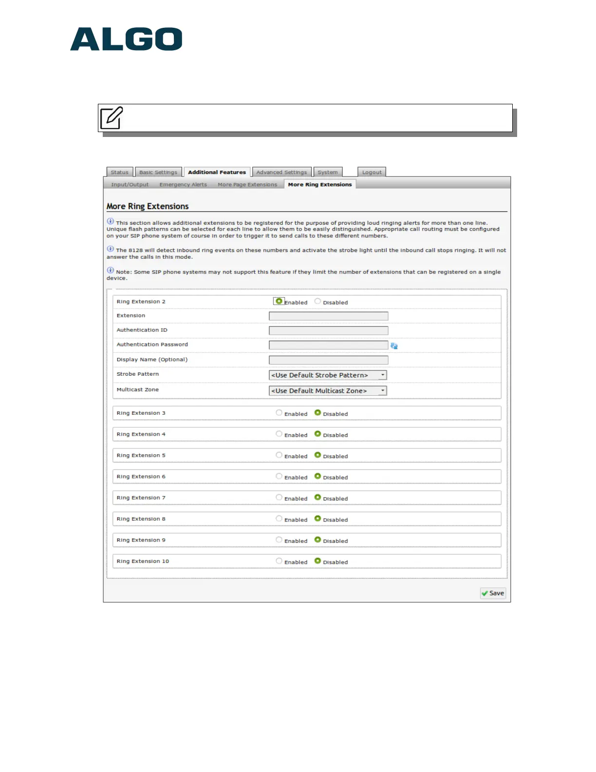 Up to 10 SIP Ring extensions can be registered. To configure additional ring