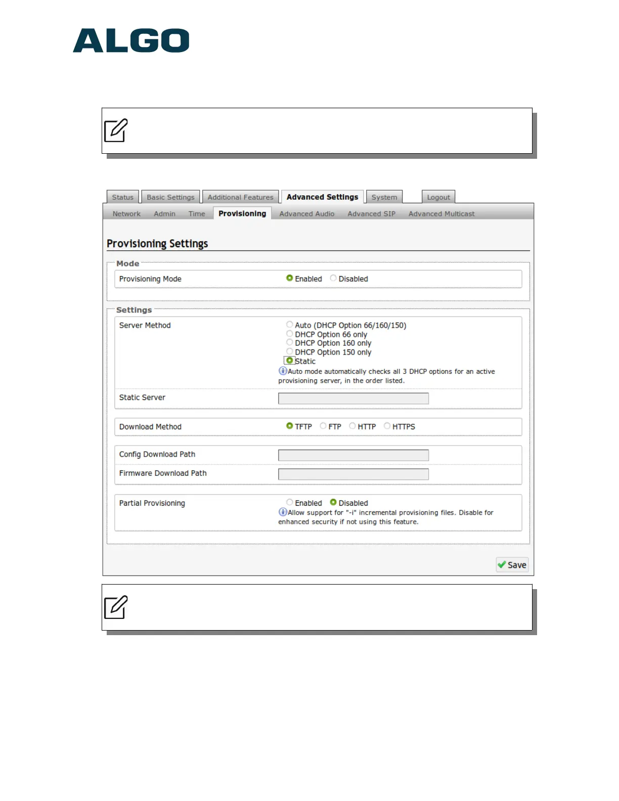 Note: It is recommended that Provisioning Mode be set to Disabled if this feature is