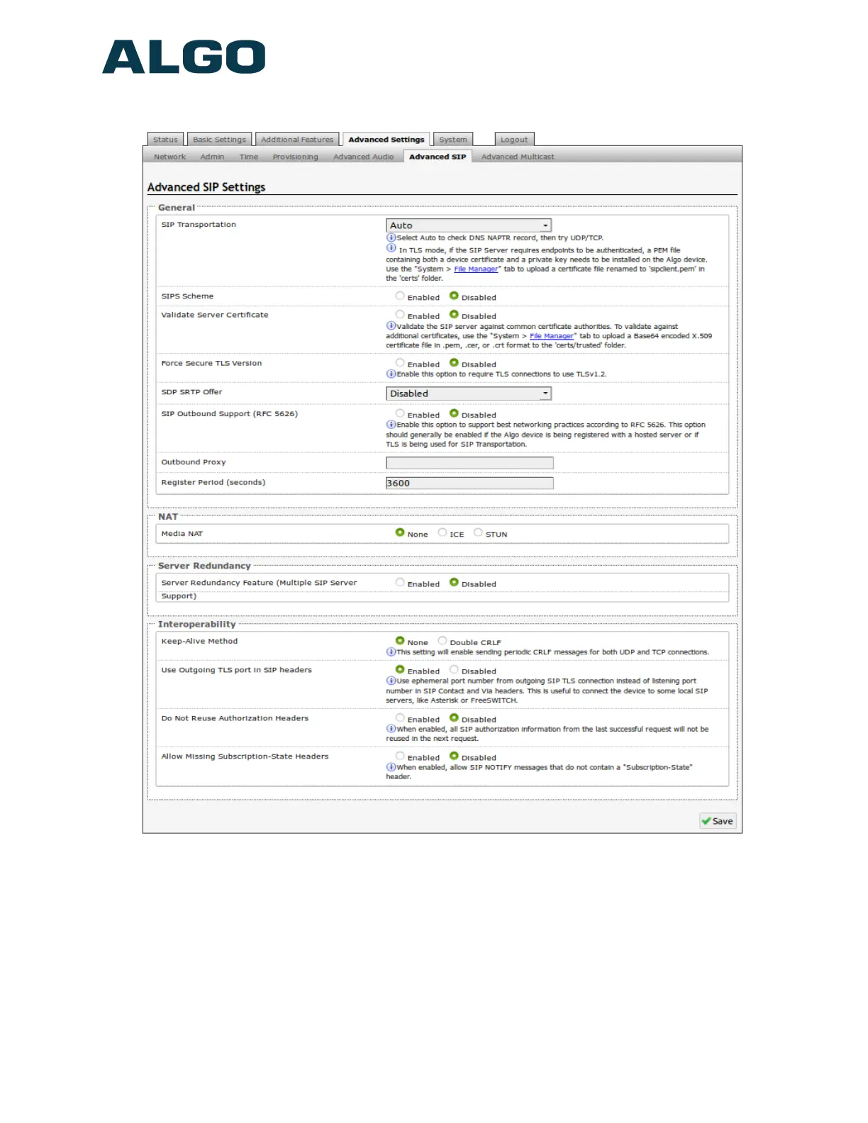 Only visible when ‘SIP Transportation’ set to ‘TLS’. Enabling SIPS Scheme