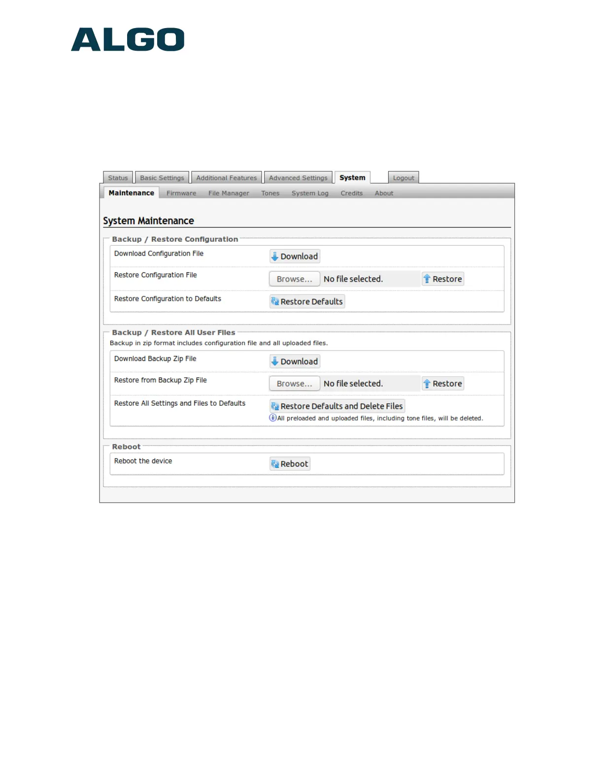 System Tab – Maintenance