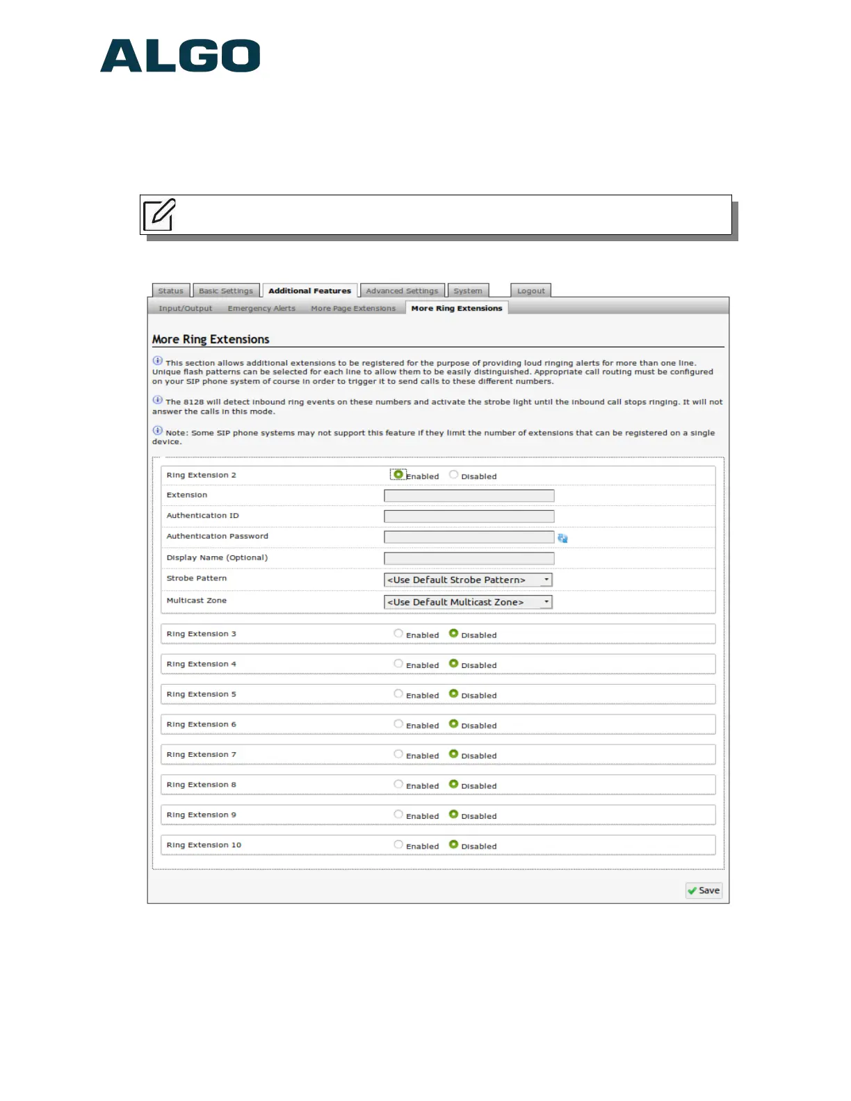 Up to 10 SIP Ring extensions can be registered. To configure additional ring extensions,