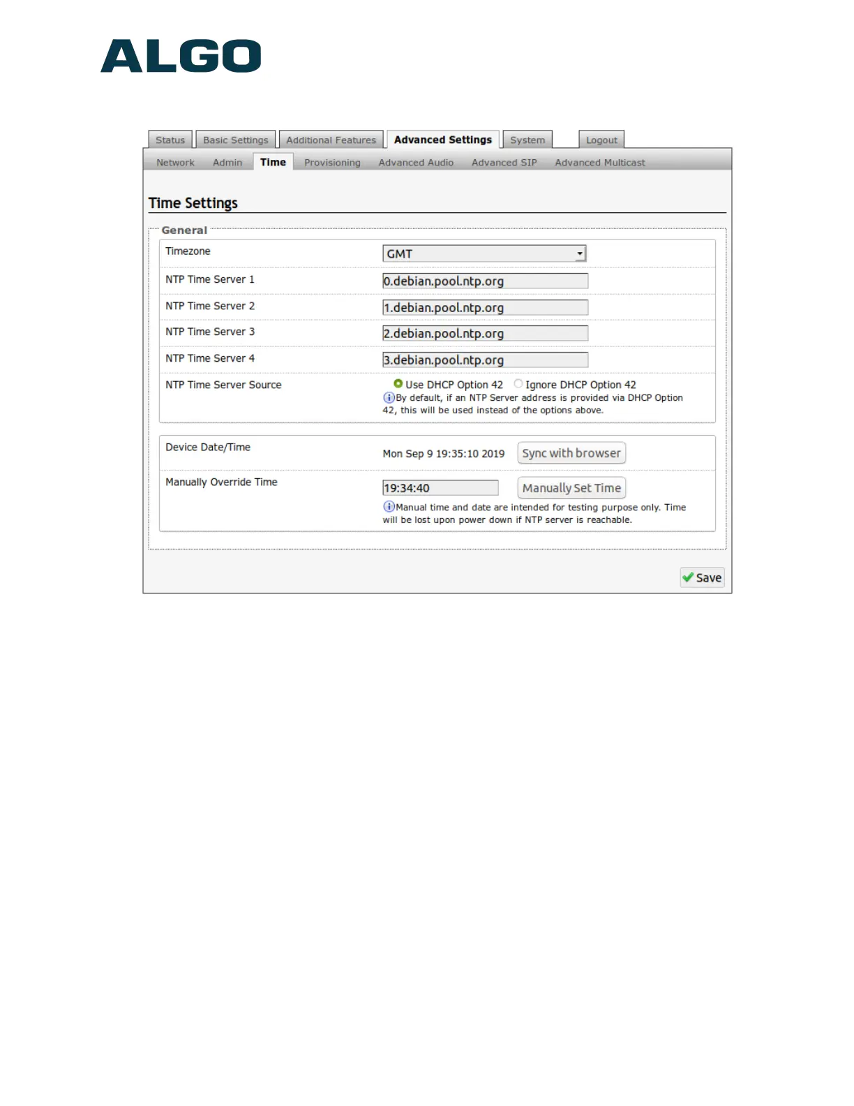 When “Use DHCP Option 42” is chosen, if an NTP Server address is provided via the