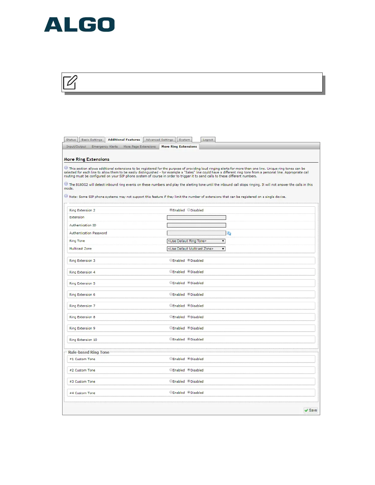 Up to 10 SIP Ring extensions can be registered. To configure additional ring extensions,