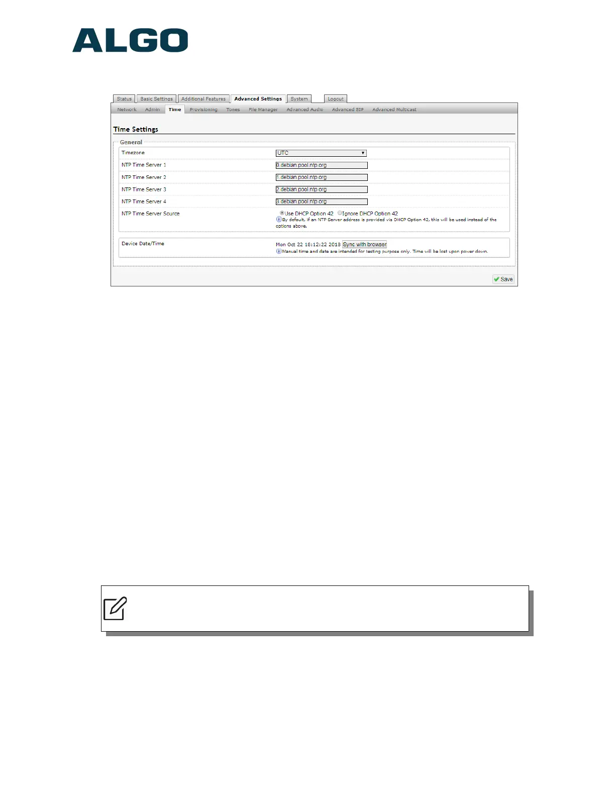When “Use DHCP Option 42” is chosen, if an NTP Server address is provided via the