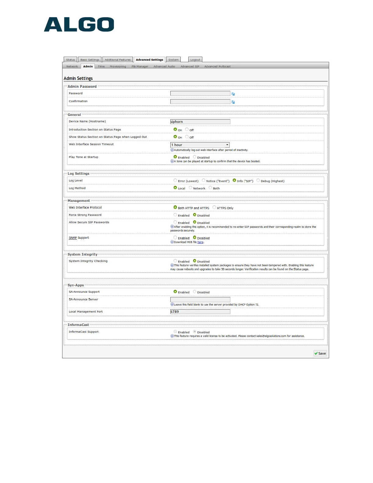 Advanced Settings Tab – Admin