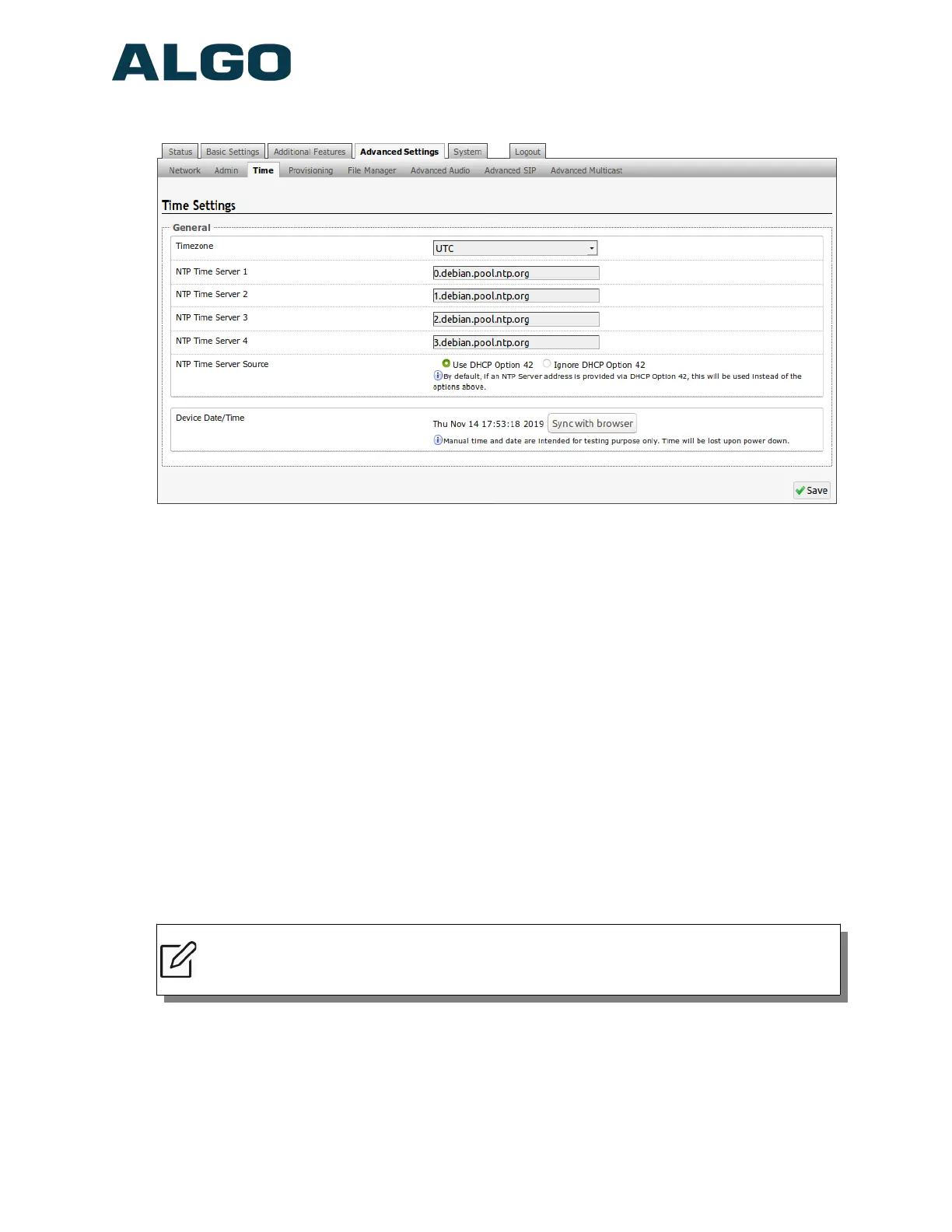 Advanced Settings Tab – Time