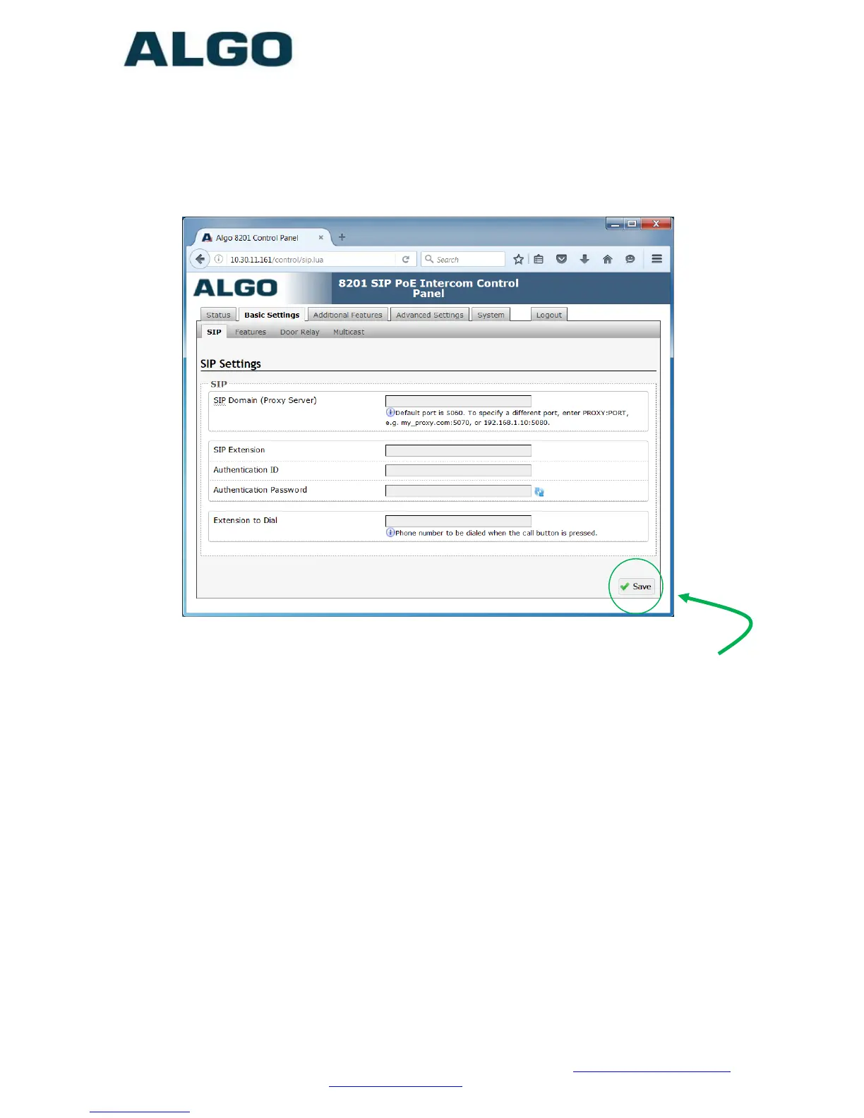 Used to register the 8201 on the SIP Server.