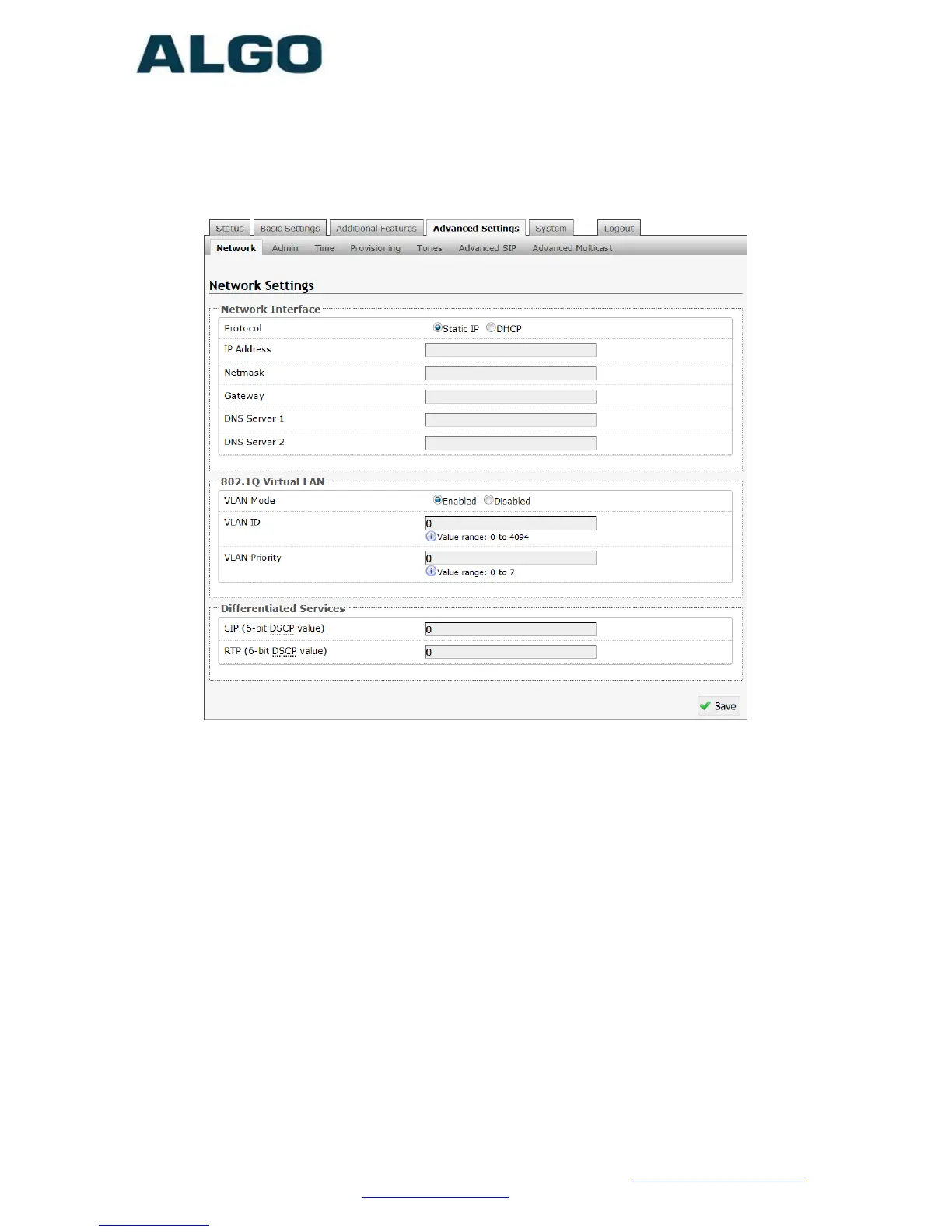 Advanced Settings Tab - Network