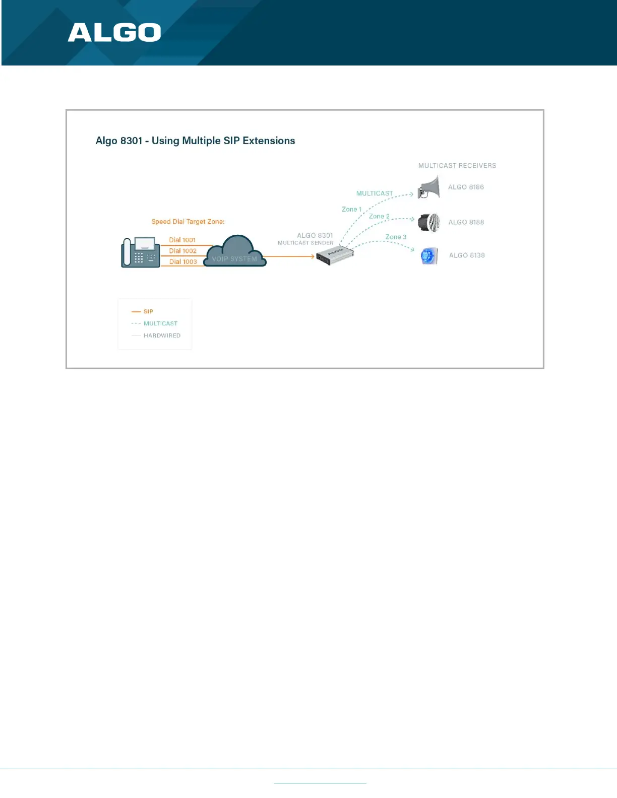 inbound call, relay input, or automated schedule, as well as multicast to other Algo SIP endpoints on the network. See