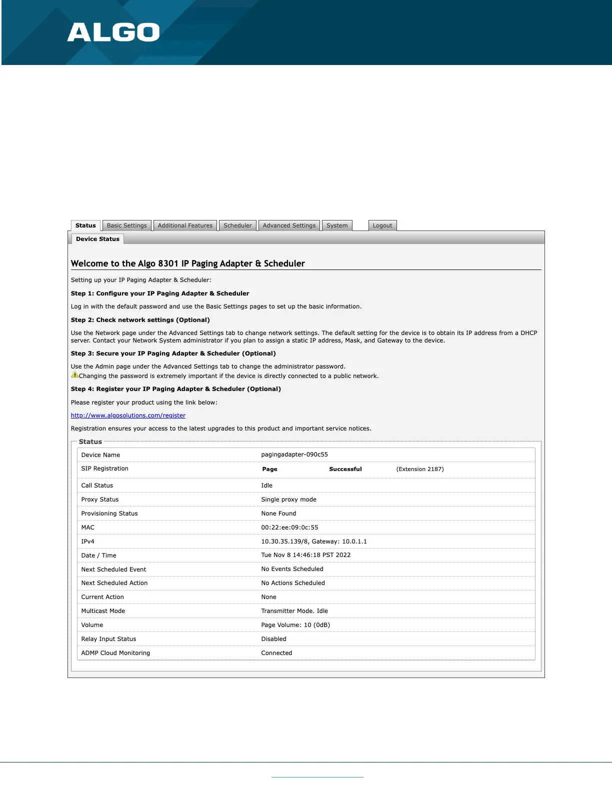Algo 8301 - 6 Web Interface; 6.1 Status and Login