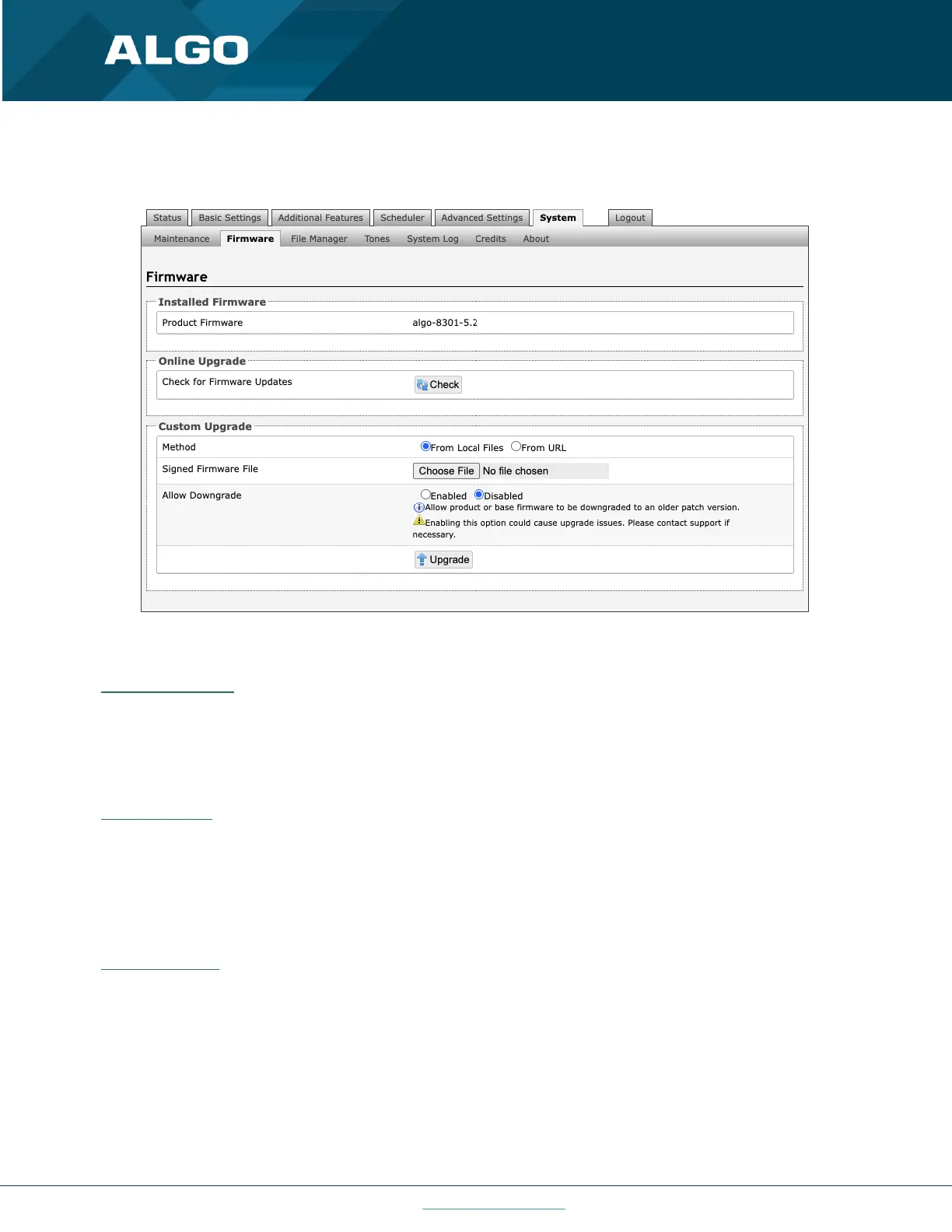 needs to be upgraded, the new firmware availability will be listed. Internet connection is required.