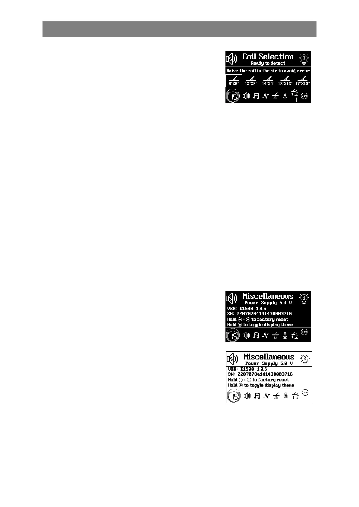these adjustments, you will see the selected coil size displayed in both the Main Detection UI and