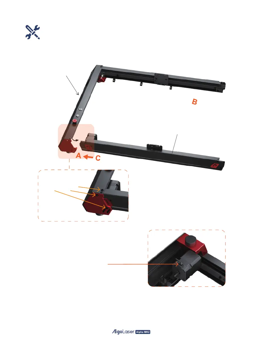 Step 2: Mount C(Right Y-Axis Assembly) on A(Front Assembly) from the side and secure it with 3 screws