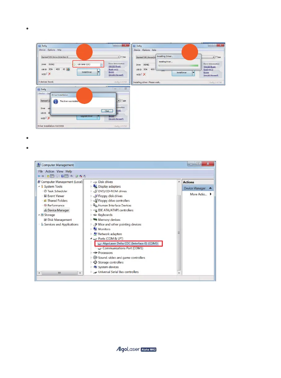 The New AlgoLaser X CDC (Interface 0) (COMX) port in Device Manager.