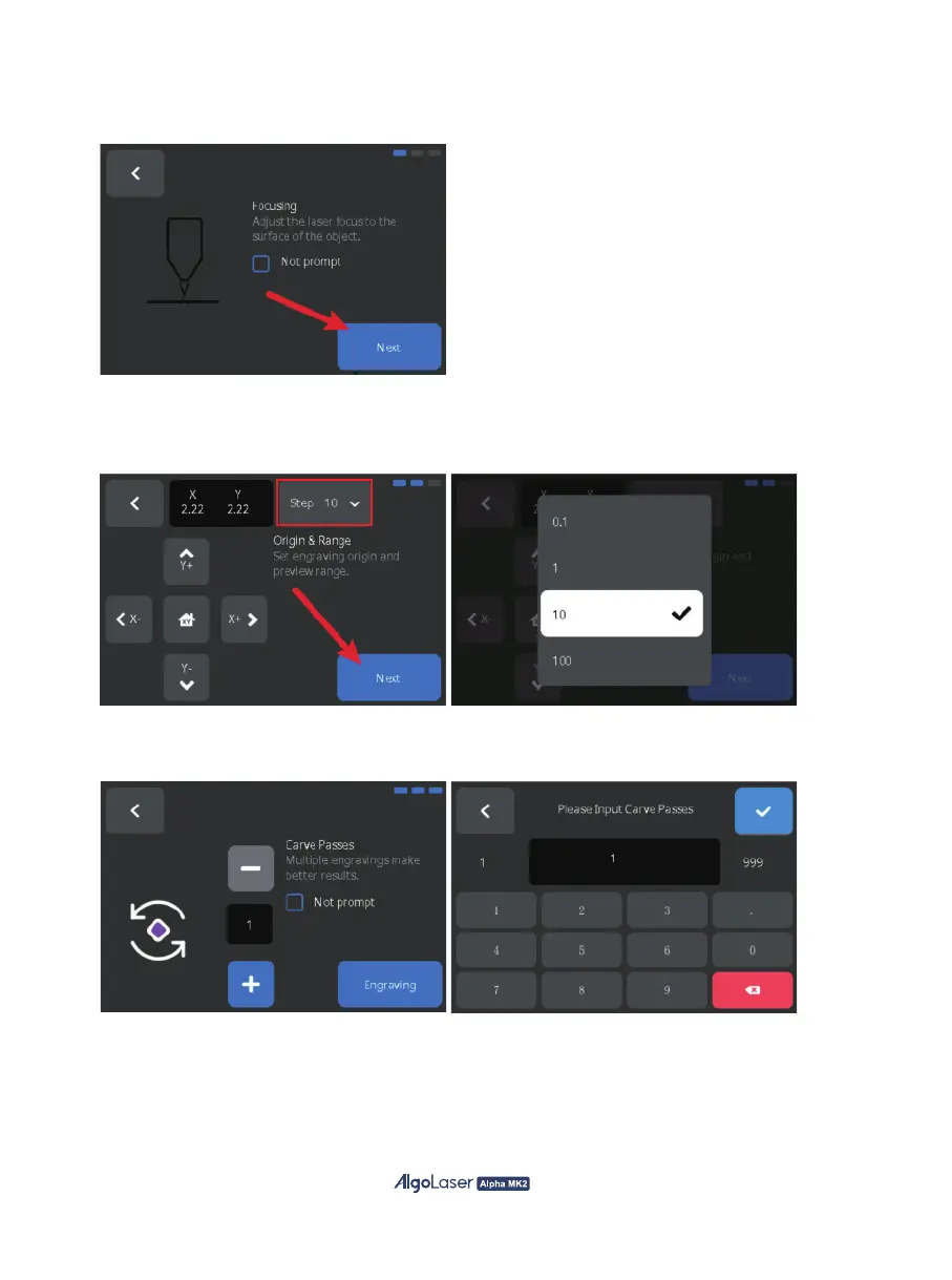 B. Engraving Range: Move the laser with the button. Click "Step" to adjust the moving distance.