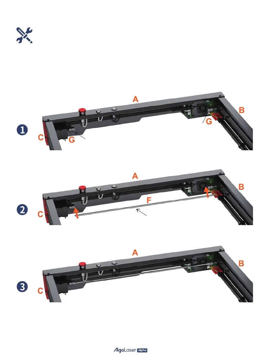 Step 12: Let the short stick go through G(Coupling), do not tighten the screws,