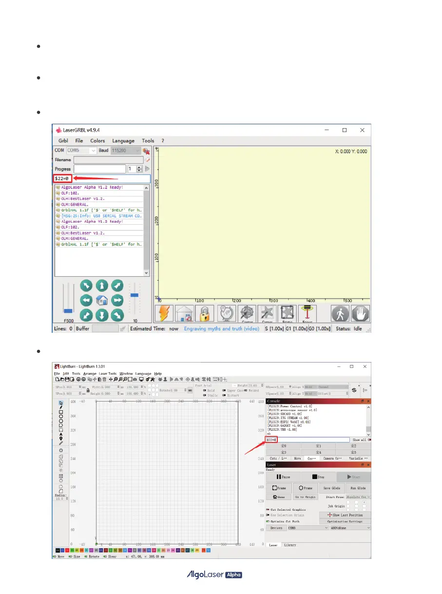 LightBurn: Send the command "$22=0" in the "(Type Commands here)" field.