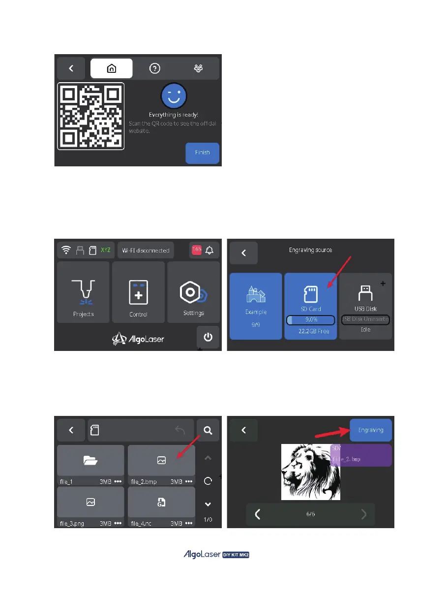 source" page. Then select the desired engraving file source, which can be either from the SD card,