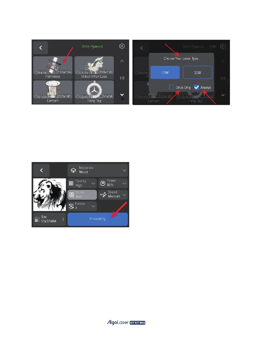 engraving by default, click on the upper right corner of the settings button to change the laser model.